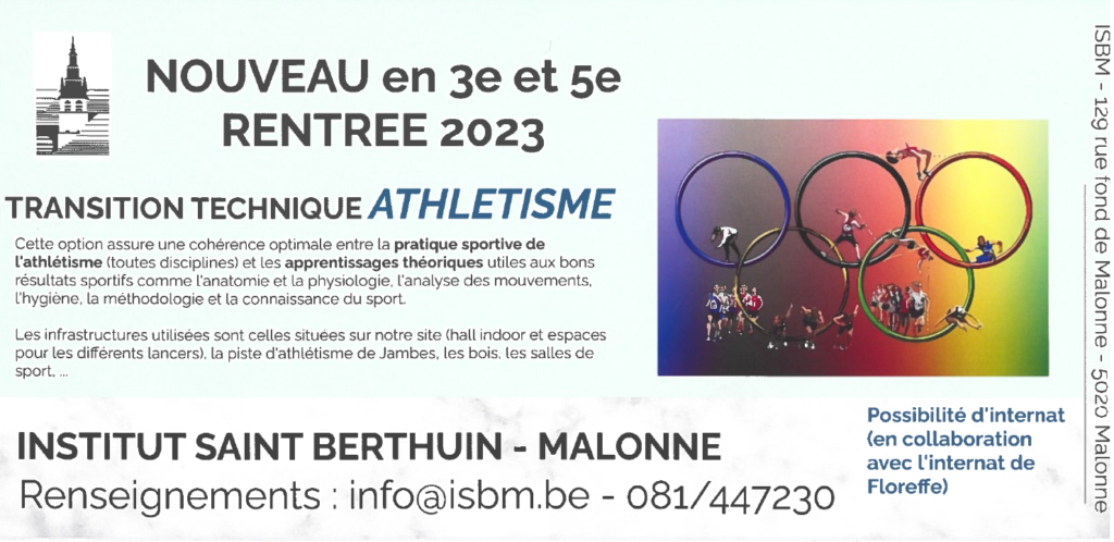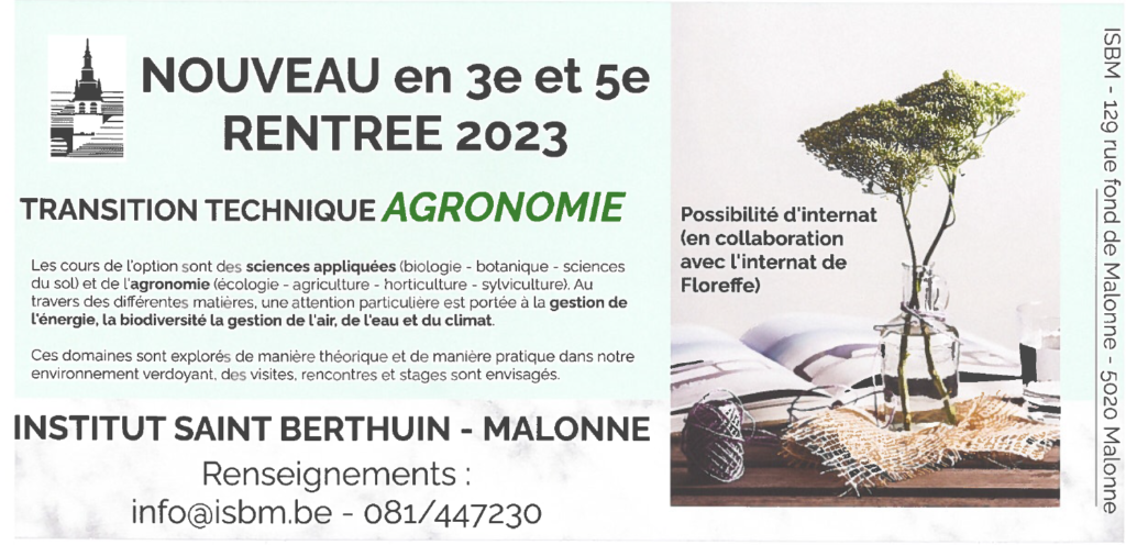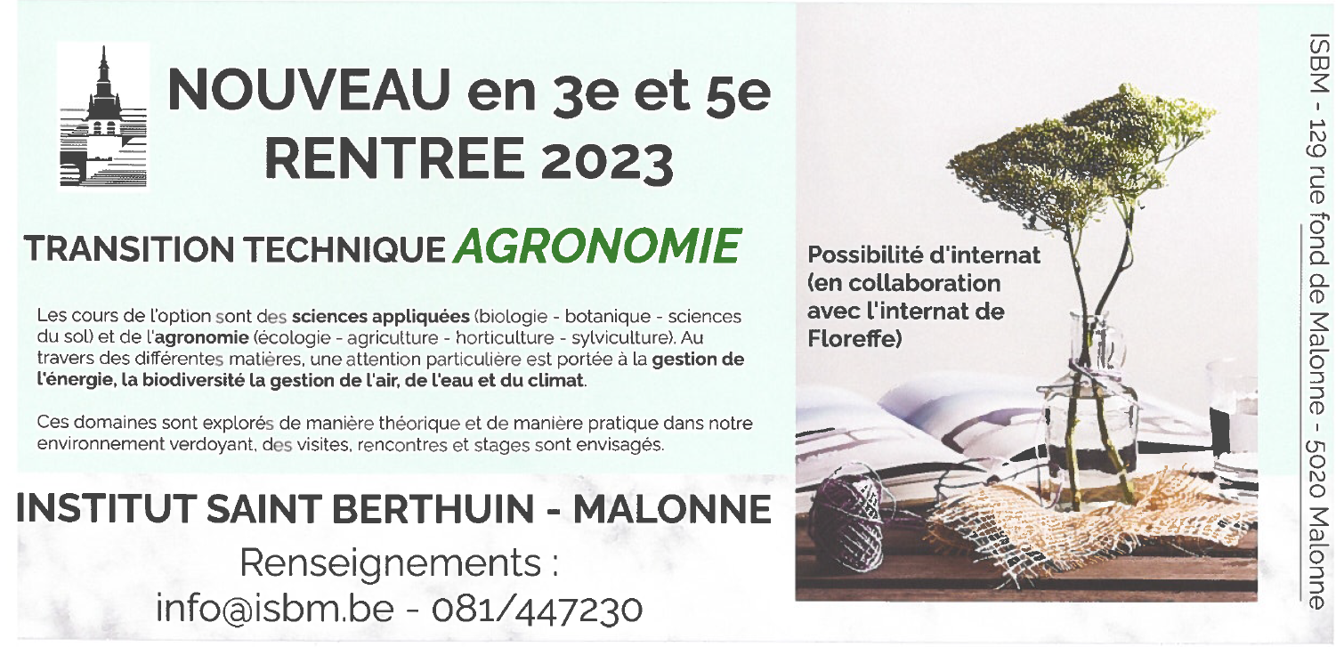 Logo de l'Institut Saint-Berthuin à Malonne. Le visuel comprend une illustration stylisée en noir et blanc de l'architecture de l'établissement, accompagnée du texte « Institut Saint-Berthuin Malonne » aligné sur trois lignes à droite.